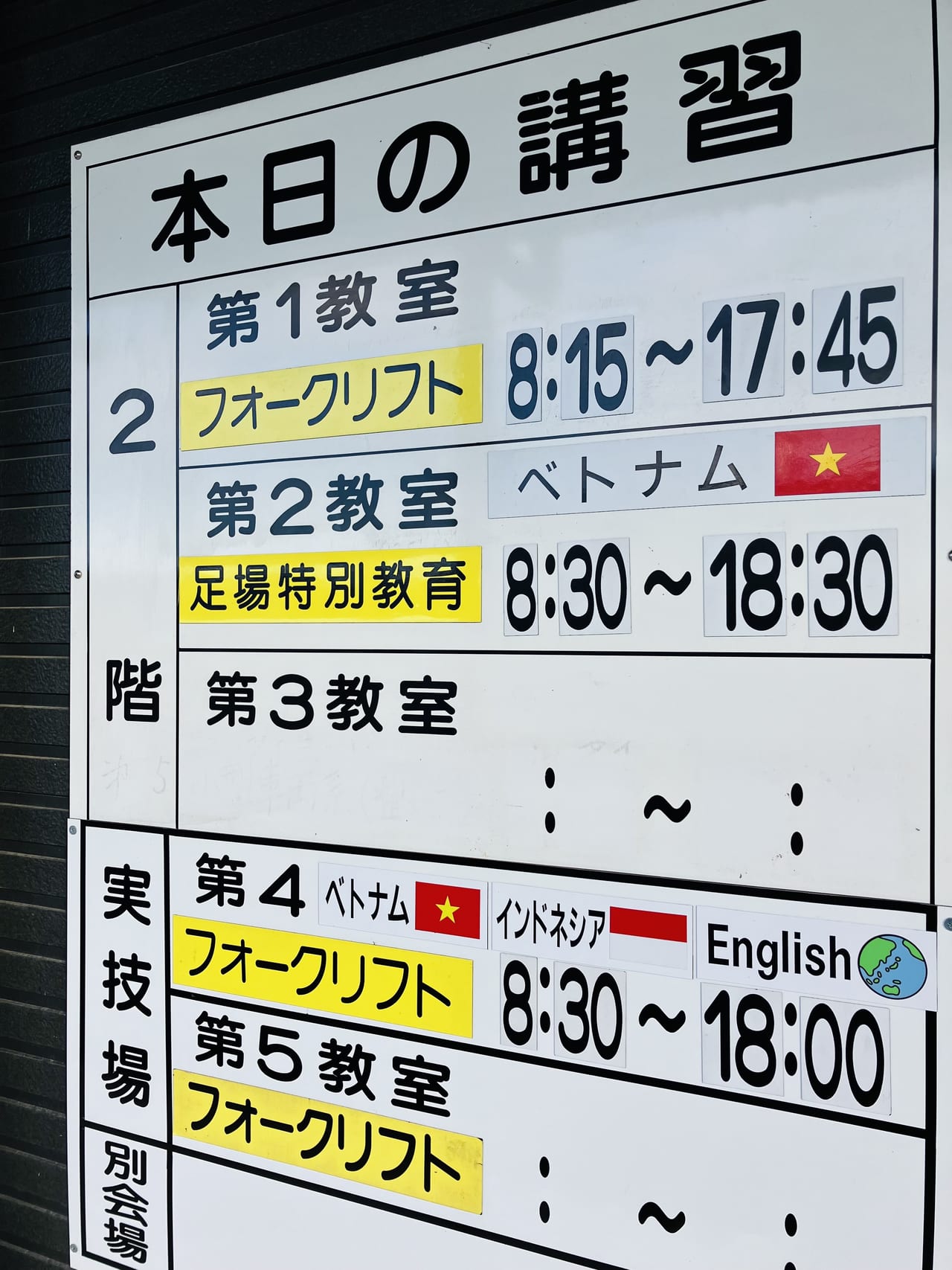 1日目 学科【8時30分〜18時30分】座学と安全教育ビデオ