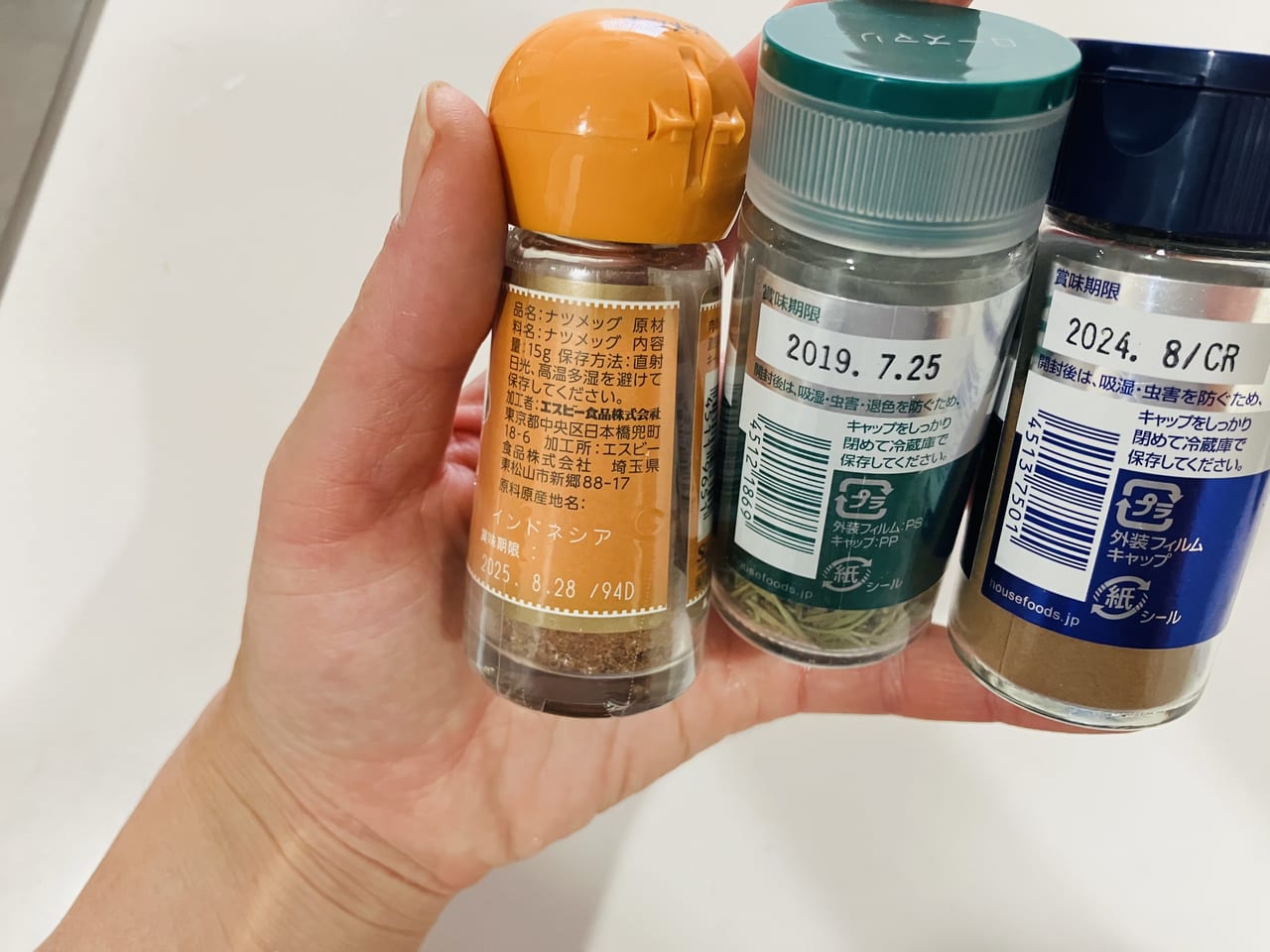 この辺は夫のものなので、処分するか確認すると「置いといて〜」とのこと。6年間このようにして、処分を逃れたローズマリー。あと何年保管すればいいんやろう…と思いながら冷蔵庫に戻しました。