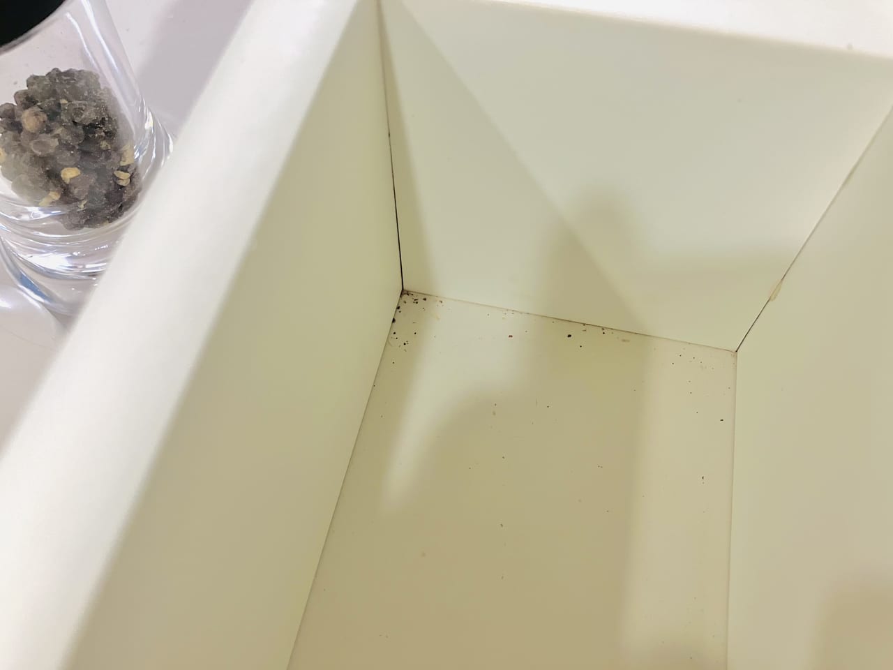 ジャリジャリです。引き出しごとひっくり返して掃除です。