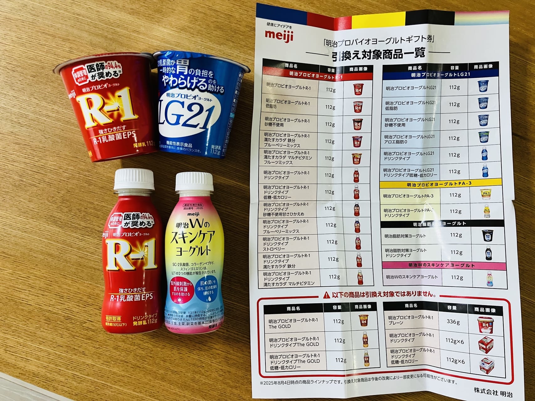 あとはR-1などのヨーグルトや飲み物が4つもらえるギフト券も同封されていました。