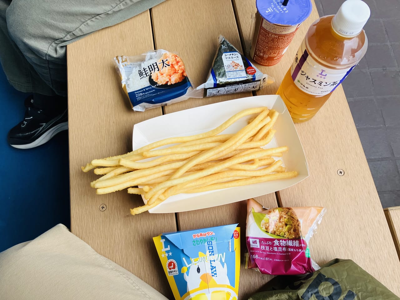 昼ごはんにとフードコートへ行きましたが混んでいたため、近隣のコンビニでおにぎりを購入。